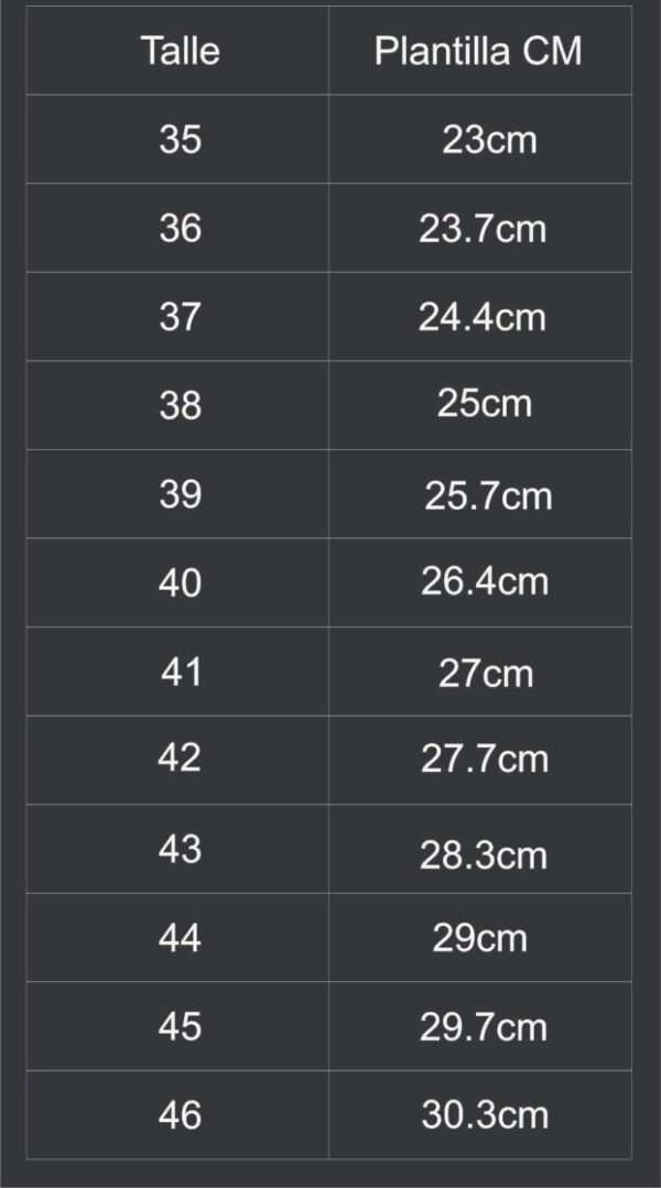 | Número | 35, 36, 37, 38, 39, 40, 41, 42, 43, 44, 45, 46 |